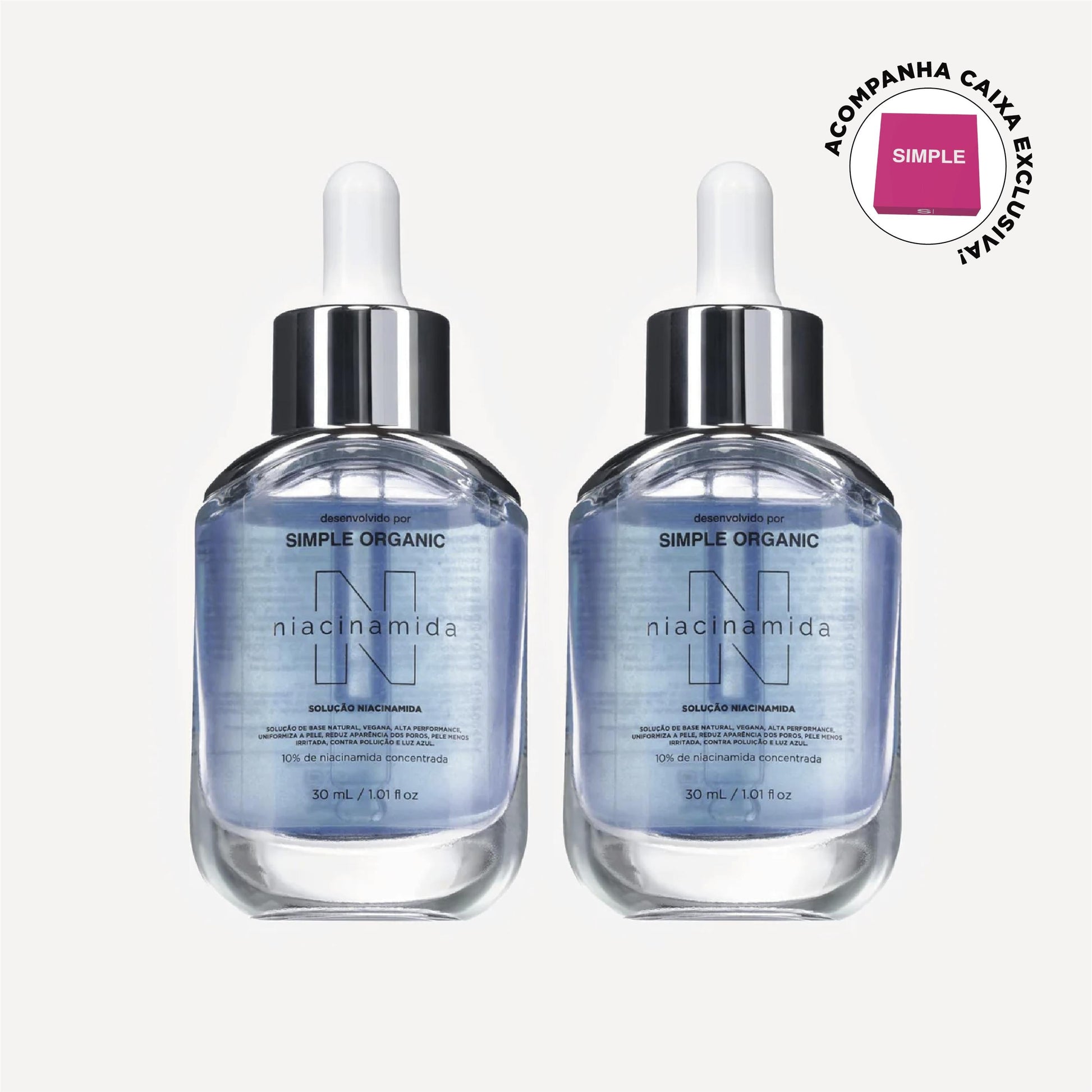 Niacinamida Simple Organic para variados tipos de pele. Diminui os poros dilatados, uniformiza o tom da pele, melhora a elasticidade e o aspecto de linhas finas. Nossa Solução possui 10% de Niacinamida concentrada, com ação multifuncional poderosa e segura, especialmente as peles sensíveis, já que possui eficácia comprovada para reduzir a vermelhidão e acalmar a pele sem irritar.