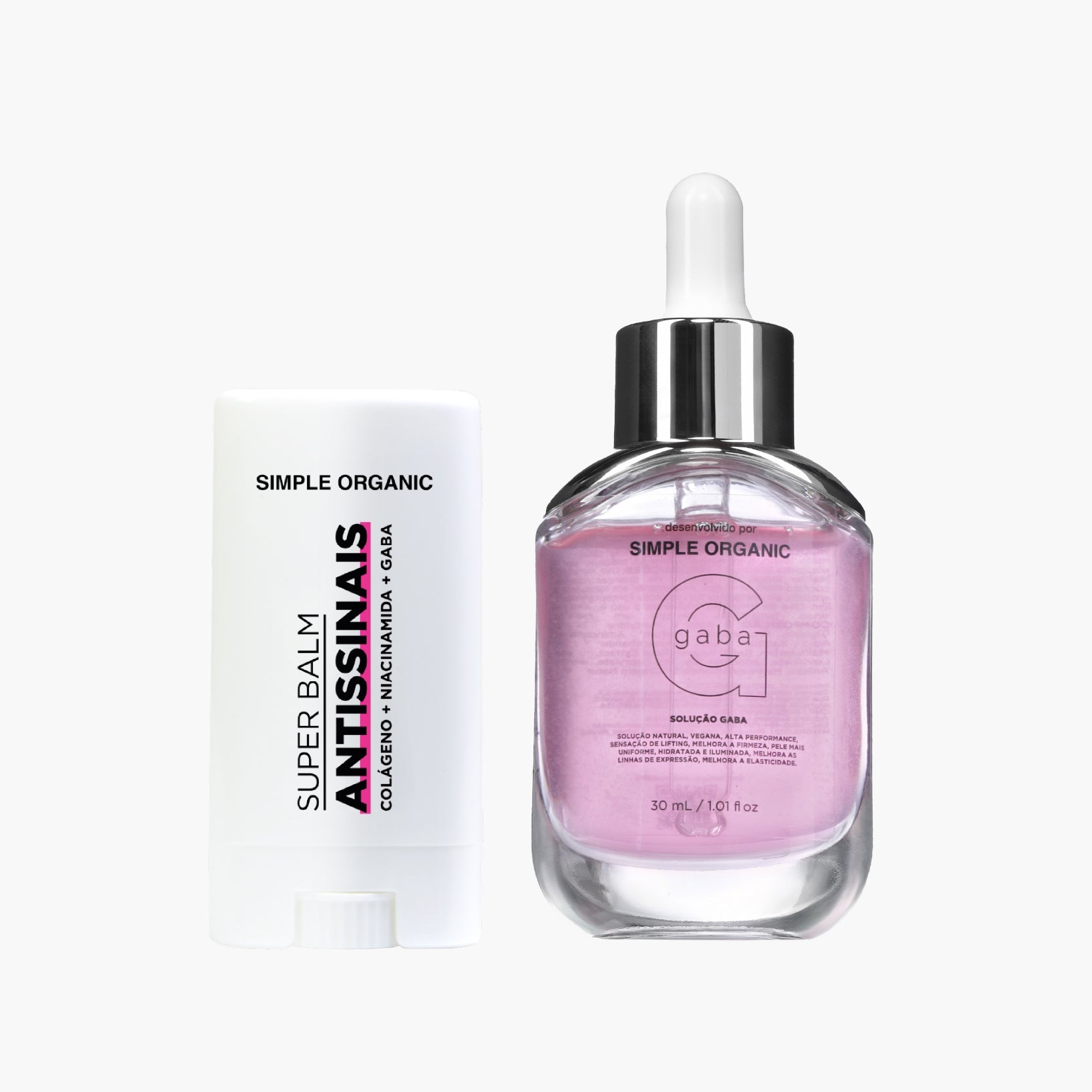 Se a sua pele pede mais firmeza, hidratação e um boost contra os sinais do tempo, esse combo é a escolha ideal. A Solução Gaba promove efeito lifting imediato, melhora a elasticidade, reforça a barreira cutânea e deixa a pele tonificada e protegida. O Super Balm Antissinais complementa o tratamento com Colágeno Vegano, Niacinamida e Ácido Hialurônico, ativos que hidratam profundamente, suavizam linhas finas e restauram o viço. Juntos, esses dois produtos transformam a textura da pele, melhoram a firmeza, e deixam a pele com aspecto renovado.