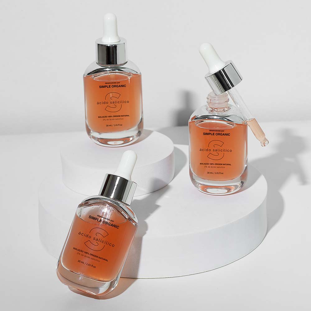 Desenvolvida na maior concentração permitida do ativo que é referência para o cuidado das peles oleosas e acneicas, a Solução Ácido Salicílico possui 2% da primeira versão natural, aprovada, sustentável e de alta performance de ácido salicílico do Brasil. Multifuncional e referência no tratamento da acne, o Ácido Salicílico promove a renovação celular, traz viço, reduz poros e suaviza linhas finas ao mesmo tempo que atua diretamente na produção e manutenção da oleosidade na pele e atenua a acne de forma eficaz, principalmente as mais inflamadas. O ativo é completo, capaz de penetrar profundamente nos poros, onde as células mortas e a excreção de oleosidade estão armazenadas e também atuar na camada mais superficial da pele, para regular a oleosidade. Sua fórmula é limpa, 100% natural e com matérias primas de alta performance, como o Zinco PCA, os Extratos Vegetais de Jabuticaba e Acerola, Polissacarídeos de alto peso molecular e Propanediol natural. O Zinco é poderoso no controle da oleosidade excessiva e é o aliado perfeito para potencializar ainda mais os cuidados de peles oleosas e acneicas. O ativo ajuda reduzir e equilibrar a oleosidade através da inibição de uma enzima presente no processo produção da substância oleosa, chamada de 5-alfa redutase. A matéria-prima possui eficácia comprovada na redução da oleosidade e na proliferação de bactérias que promovem a acne. Já os Extratos de Jabuticaba e Acerola são ricos em polifenóis e possuem propriedades antioxidantes, remineralizantes e são altamente adstringentes. Os polissacarídeos de alto peso molecular oferecem uma ação calmante para a pele, ao mesmo tempo que hidratam, reestruturam a barreira da pele e suavizam os sinais do tempo. No lugar de conservantes sintéticos, utilizamos conservante natural certificado e multifuncional, que protege a fórmula e ainda oferece um sensorial aveludado. Substituímos a glicerina de origem animal, muito comum na beleza convencional pela Glicerina Vegetal, assim como a nossa Goma Xantana, que é natural e 100% vegana. Com textura leve, fácil de aplicar, secagem rápida e fragrância suave, promove uma pele mais uniforme, hidratada, homogênea, com oleosidade controlada ao longo do dia na medida ideal, sem perder a luminosidade. É a escolha de Clean Beauty completa, específica para uso noturno e pode ser inserida na sua rotina de skincare após a higienização da pele com a Espuma Control, Gel de Limpeza Power ou Sabonete Arroz + Aveia. Seus efeitos são potencializados quando utilizada junto aos produtos da linha POWER Ácido Salicílico e é necessário utilizar o protetor solar durante todo o tratamento. Livre de ingredientes sintéticos e problemáticos, inovamos mais uma vez ao trazer o ativo de alta performance que é referência entre os dermatologistas para o Universo de Clean Beauty, de forma sustentável e consciente. Nosso Ácido Salicílico é de origem vegetal, proveniente do óleo essencial de Gualtéria. Assim como todas as matérias-primas da Simple, é livre de trabalho escravo, sustentável e possui origem 100% rastreável. Perfeito para a pele e para o planeta, o Ácido Salicílico e o Zinco possuem capacidade altamente purificante. Por isso, sugerimos utilizar com cautela em uma rotina de cuidado muito adstringente, para que o produto possa oferecer todos os seus benefícios sem causar efeito rebote. Seu uso é exclusivamente noturno e é essencial inserir na sua rotina de skincare aos poucos, inicialmente de uma a duas vezes na semana, para adaptar a sua pele ao poder natural do ácido. Pode ser utilizado em todo o rosto, ou em regiões específicas que necessitam de tratamentos pontuais, junto ao nosso Power Serum Secativo. No dia seguinte, utilize protetor solar e evite exposição ao sol durante todo o tratamento. Lembre-se de manter o produto ao abrigo da luz e do calor, sempre na embalagem que o acompanha.